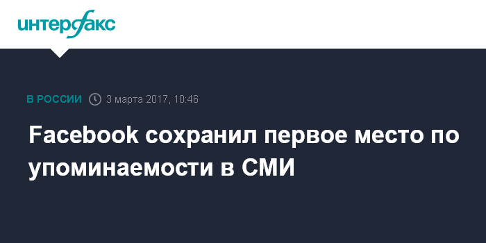 Facebook упоминался в СМИ более 126 тыс. раз (122 тыс. раз в январе, также первое место). Из новостей, касающихся функционирования социальной сети, самый крупный массив сообщений сформировался в связи с новостью о том, что Facebook заблокировал аккаунт советника президента РФ по вопросам интернета Германа Клименко. На втором месте по объему - заявления основателя сети Марка Цукерберга о том, что он намерен сделать акцент на развитии социальной инфраструктуры Facebook.