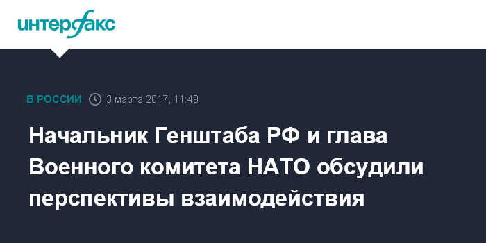 Москва. 3 марта. INTERFAX.RU - Начальник Генерального штаба Вооруженных сил РФ генерал армии Валерий Герасимов обсудил с председателем Военного комитета НАТО генералом Петром Павелом перспективы восстановления взаимодействия по военной линии, сообщает Минобороны РФ.