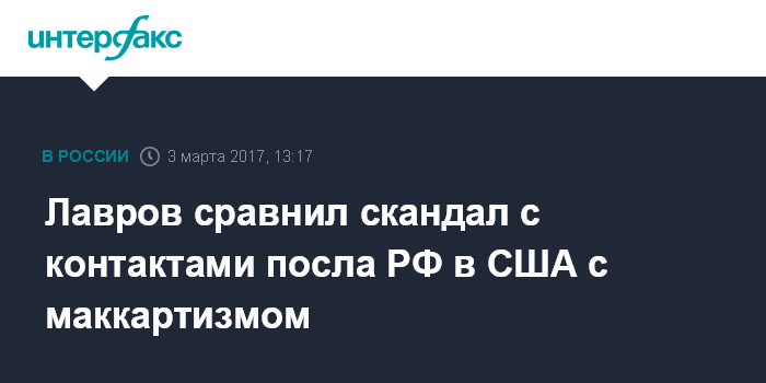 Лавров сравнил скандал с контактами посла РФ в США с маккартизмом
