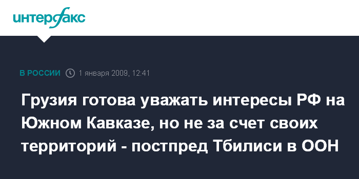 Грузия готова уважать интересы РФ на Южном Кавказе, но не за счет своих территорий - постпред Тбилиси в ООН