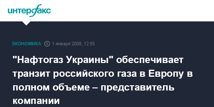 Киев. 1 января. INTERFAX.RU - Транзит российского газа в Европу осуществляется в полном соответствии с заявками ОАО "Газпром", несмотря на сокращение поставок газа на входе в украинскую газотранспортную систему, сообщили агентству "Интерфакс-Украина" в НАК "Нафтогаз Украины" в четверг.