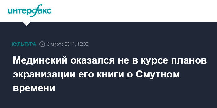 Мединский оказался не в курсе планов экранизации его книги о Смутном времени