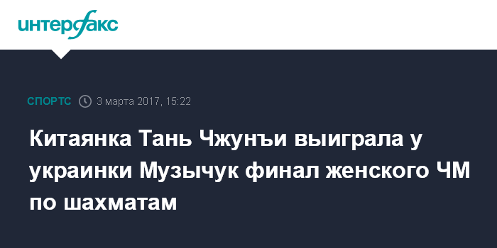 Китаянка Тань Чжунъи выиграла у украинки Музычук финал женского ЧМ по шахматам