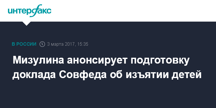Москва. 3 марта. INTERFAX.RU - Рабочая группа для подготовки альтернативного доклада по анализу практики изъятия детей из семей будет создана в Совете Федерации, сообщила пресс-служба сенатора Елены Мизулиной.
