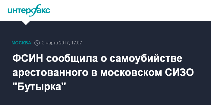 ФСИН сообщила о самоубийстве арестованного в московском СИЗО "Бутырка"