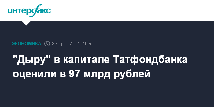 "Дыру" в капитале Татфондбанка оценили в 97 млрд рублей