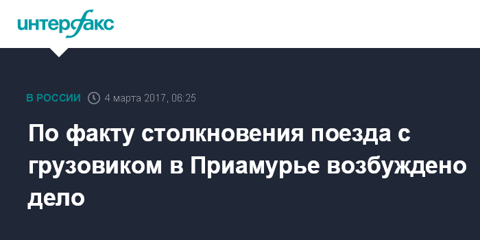 Москва. 4 марта. INTERFAX.RU - Следователи возбудили уголовное дело по факту дорожно-транспортного происшествия на железнодорожном переезде станции Арга в Приамурье, в результате которого погибли три человека.