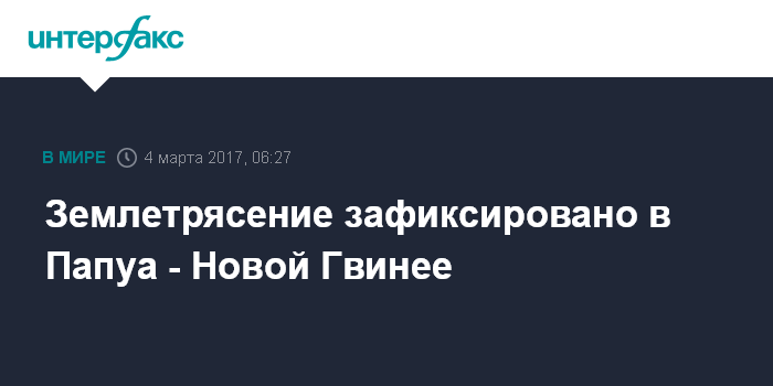 Землетрясение зафиксировано в Папуа - Новой Гвинее