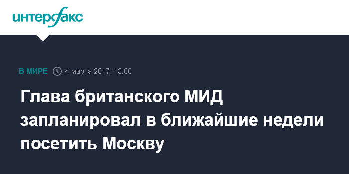 Позже в посольстве Великобритании в Москве "Интерфаксу" сообщили, что Джонсон нанесет визит в Россию в конце марта. "Визит главы Форин-офиса Бориса Джонсона в Россию запланирован на конец марта", - сказали дипломаты.