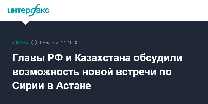 "В контексте только что завершившихся женевских переговоров президент России сообщил о намерении военных подразделений сирийской оппозиции провести очередную встречу по урегулированию сирийского кризиса в Астане в середине марта этого года. В свою очередь, президент Казахстана заявил о готовности организовать такие переговоры", - говорится в сообщении.