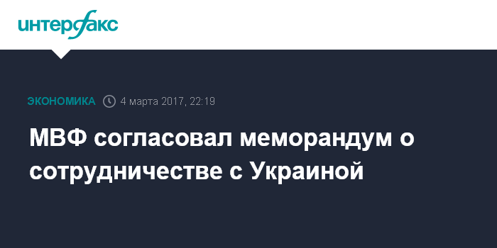 Москва. 4 марта. INTERFAX.RU - Международный валютный фонд (МВФ) согласовал обновленный меморандум об экономической и финансовой политике Украины, сообщается в пресс-релизе Фонда.