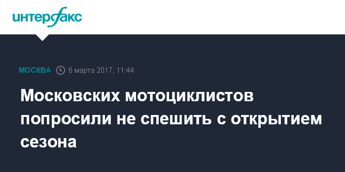 Москва. 6 марта. INTERFAX.RU - Центр организации дорожного движения призывает мотоциклистов не спешить открывать сезон, а водителей - повременить со сменой шин на летние, сообщили "Интерфаксу" в понедельник в пресс-службе ЦОДД.