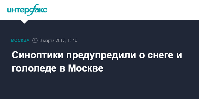 Москва. 6 марта. INTERFAX.RU - В столице в понедельник ожидаются снег и сильная гололедица, сообщает пресс-служба Гидрометцентра России.