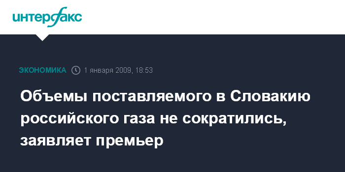"Председатель правительства в этот момент может констатировать, что поставки российского газа в Словацкую республику не сокращены. Правительство приняло меры на случай кратковременного срыва поставок", - заявила С.Глендова.