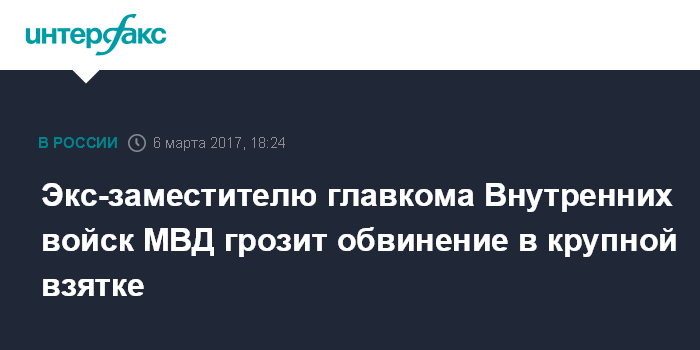 Экс-заместителю главкома Внутренних войск МВД грозит обвинение в крупной взятке