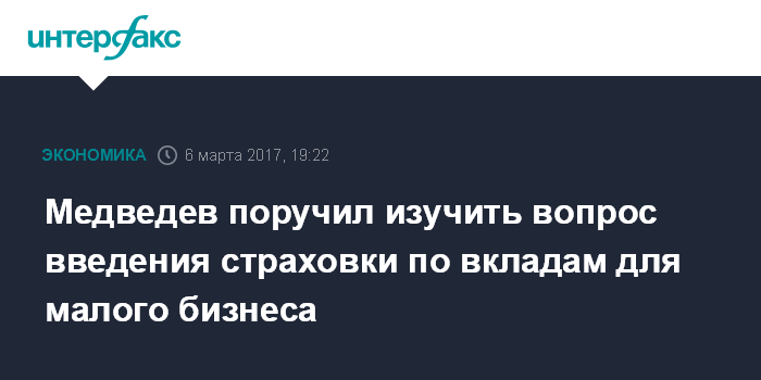 Медведев поручил изучить вопрос введения страховки по вкладам для малого бизнеса