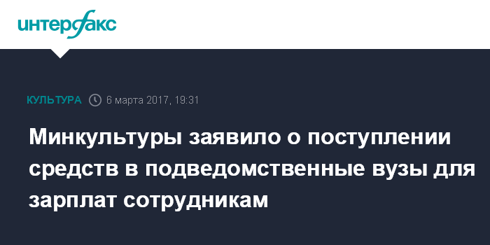Минкультуры заявило о поступлении средств в подведомственные вузы для зарплат сотрудникам