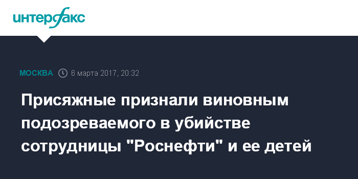 Присяжные признали виновным подозреваемого в убийстве сотрудницы "Роснефти" и ее детей