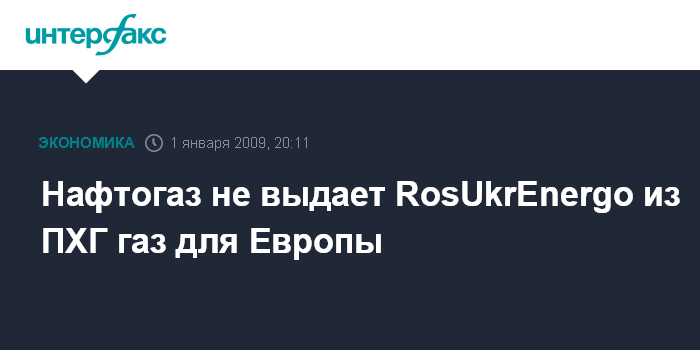 Москва. 1 января. ИНТЕРФАКС-АГИ - НАК "Нафтогаз Украины" отказывается поднимать из украинских подземных хранилищ (ПХГ) газ трейдера RosUkrEnergo, предназначенный для европейских потребителей.