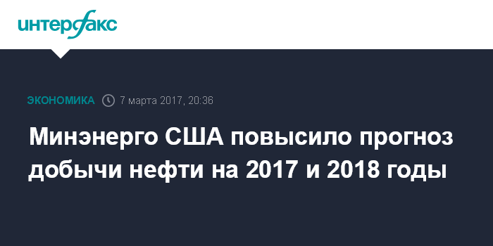 Москва. 7 марта. INTERFAX.RU - Управление по информации в области энергетики (EIA) министерства энергетики США повысило прогноз добычи нефти в стране на 2017 год с 8,98 млн баррелей в сутки (б/с) до 9,21 млн б/с.