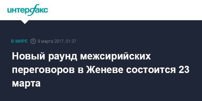 Новый раунд межсирийских переговоров в Женеве состоится 23 марта