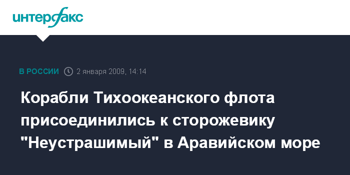 Москва. 2 января. INTERFAX.RU - Отряд боевых кораблей Тихоокеанского флота ВМФ России зашел в Аравийское море.