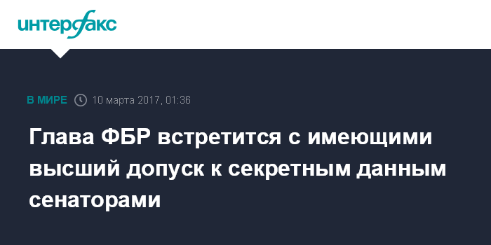 Глава ФБР встретится с имеющими высший допуск к секретным данным сенаторами