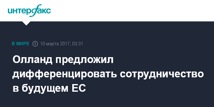 Москва. 10 марта. INTERFAX.RU - Президент Франции Франсуа Олланд рассчитывает, что в Римскую декларацию о будущем Евросоюза, которая будет принята 25 марта по случаю 60-летия Римского договора, удастся включить то, что он назвал "дифференцированным сотрудничеством" или, как вариант, "дифференцированной интеграцией".