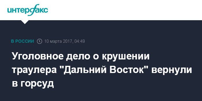 Уголовное дело о крушении траулера "Дальний Восток" вернули в горсуд