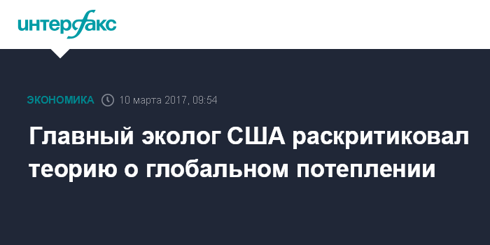 Москва. 10 марта. INTERFAX.RU - Новый глава Агентства по охране окружающей среды США Скотт Прюитт не верит в решающую роль углекислого газа в проблеме глобального потепления.