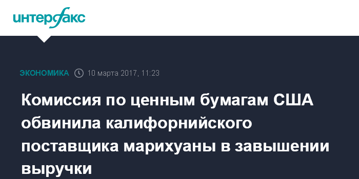 Комиссия по ценным бумагам США обвинила калифорнийского поставщика марихуаны в завышении выручки