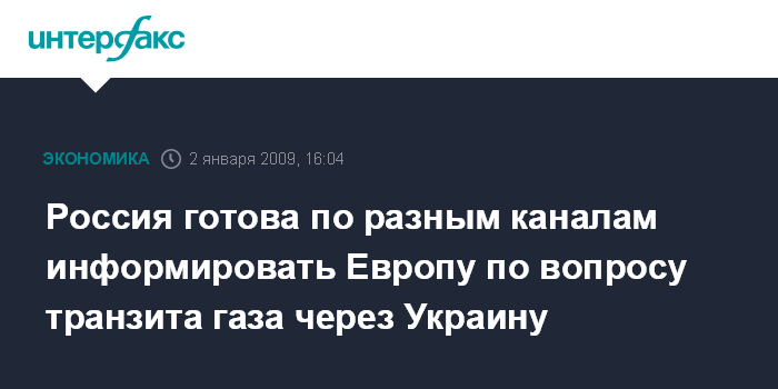 Россия готова по разным каналам информировать Европу по вопросу транзита газа через Украину