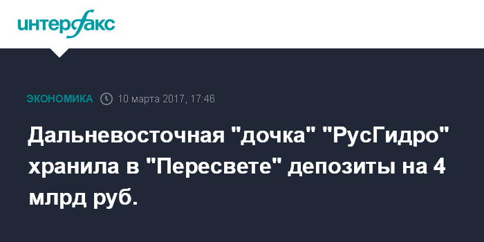 Дальневосточная "дочка" "РусГидро" хранила в "Пересвете" депозиты на 4 млрд руб.