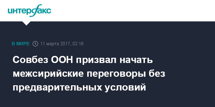 Москва. 11 марта. INTERFAX.RU - С нетерпением ждет возобновления межсирийских переговоров и призывает стороны сирийского конфликта принять участие в них без предварительных условий Совет Безопасности ООН.