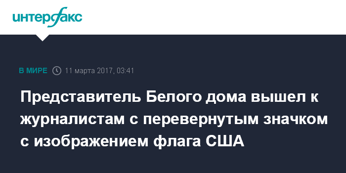 Москва. 11 марта. INTERFAX.RU - Пресс-секретарь Белого дома Шон Спайсер в пятницу вышел на брифинг к журналистам с перевернутым значком-флагом США на лацкане пиджака.