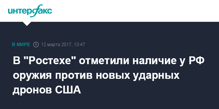 Москва. 12 марта. INTERFAX.RU - Генеральный директор госкорпорации "Ростех" Сергей Чемезов заявил, что у России есть оружие против недавно презентованного в США роя малых ударных беспилотников.