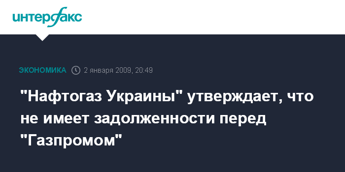 Киев. 2 января. ИНТЕРФАКС-УКРАИНА - НАК "Нафтогаз Украины" отрицает наличие задолженности за потребленный в ноябре-декабре 2008 года импортированный газ.