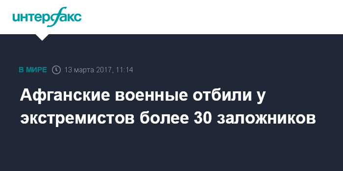 Москва. 13 марта. INTERFAX.RU - На юге Афганистана из плена боевиков освобождены 32 заложника, сообщают местные СМИ со ссылкой на представителя Министерства обороны республики.