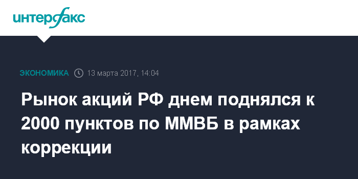 Рынок акций РФ днем поднялся к 2000 пунктов по ММВБ в рамках коррекции