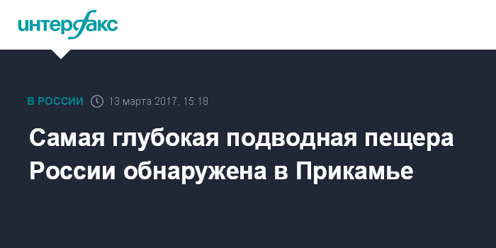 Москва. 13 марта. INTERFAX.RU - Спелеодайверам удалось достигнуть рекордной глубины при погружении в пещеру в Голубом озере на реке Чусовая (Пермский край), сообщает местный дайвинг-клуб "220BAR" в понедельник.