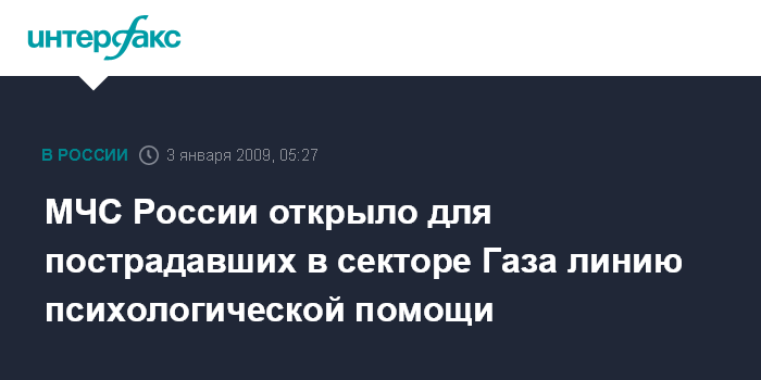 МЧС России открыл телефон "горячей линии" для пострадавших в секторе Газа и их родственников, сообщили "Интерфаксу" в Управлении информацией МЧС России.