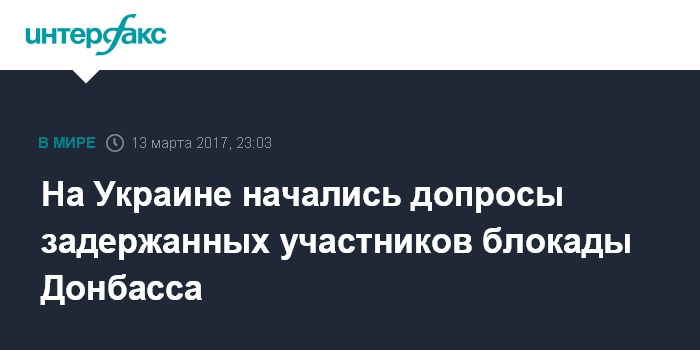 Москва. 13 марта. INTERFAX.RU - На Украине в понедельник задержаны более 40 человек, участвовавших в транспортной блокаде Донбасса на железнодорожной станции "Кривой Торец" (Донецкая область). Как сообщил министр внутренних дел Украины Арсен Аваков, 43 человека, задержанные в зоне конфликта в рамках контрдиверсионных мероприятий, допрашиваются в райотделах полиции сотрудниками спецслужб.