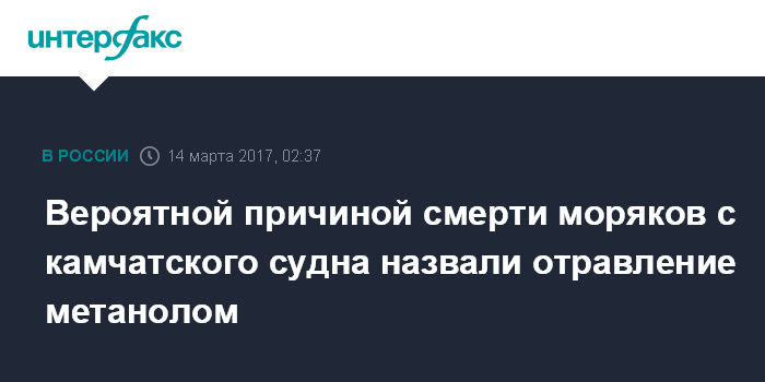 В свою очередь, источник в экстренных службах региона сообщил "Интерфаксу", что в ночь на вторник члены экипажа судна "Изумруд", которое находилось на промысле в бухте Моржовая Кроноцкого залива, по предварительным данным, пили метиловый спирт. Двое человек, как утверждается, умерли сразу.