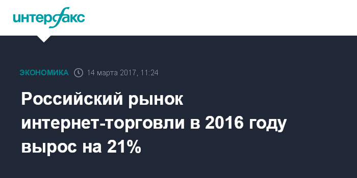 Российский рынок интернет-торговли в 2016 году вырос на 21%