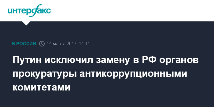 Путин исключил замену в РФ органов прокуратуры антикоррупционными комитетами