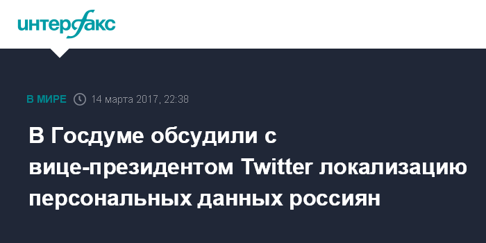 В Госдуме обсудили с вице-президентом Twitter локализацию персональных данных россиян