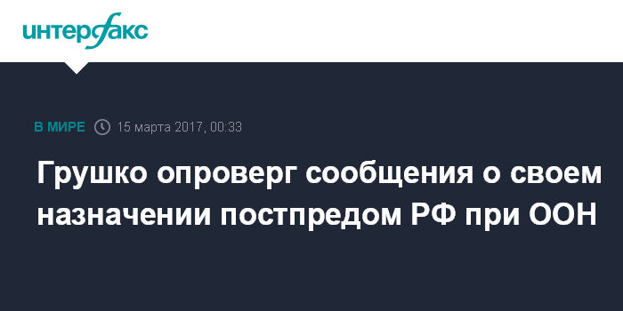 Ранее во вторник в ряде СМИ появилась информация, что Грушко может занять пост постпреда России при ООН.