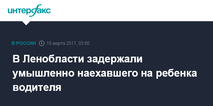 Москва. 15 марта. INTERFAX.RU - Подозреваемый в наезде автомобилем на ребенка и применении к нему насилия задержан в Ленинградской области, сообщила в среду официальный представитель Следственного комитета России Светлана Петренко.