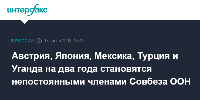 Австрия, Япония, Мексика, Турция и Уганда на два года становятся непостоянными членами Совбеза ООН