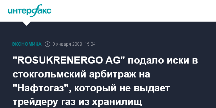 Москва. 3 января. INTERFAX.RU - Компания ROSUKRENERGO AG подала два иска в Арбитражный институт Торговой палаты Стокгольма, заявляют в компании.